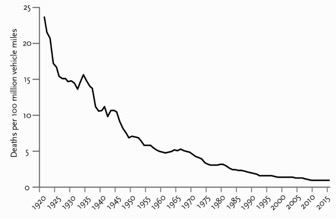 Man kan nemt komme til at tro, at vi lever i en voldelig tidsalder. Billeder af tvillingetårnene i flammer brændte sig ind på vores kollektive nethinde. På trods af den slags skrækeksempler er verden mere fredelig i dag end førhen. Færre mennesker lider en voldelig død end nogensinde før. Flere mennesker dør i trafikuheld end af krig, mord og terrorisme tilsammen[xxxii]. Det er selvfølgeligt i sig selv tragisk. Men det er et tegn på fremgang.