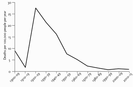 Statsmagter skaber fred, men selv efter udbredelsen af konge- og kejserriger er den positive udvikling fortsat. I Europa* er mordraten siden middelalderen styrtdykket til under en tiendedel: