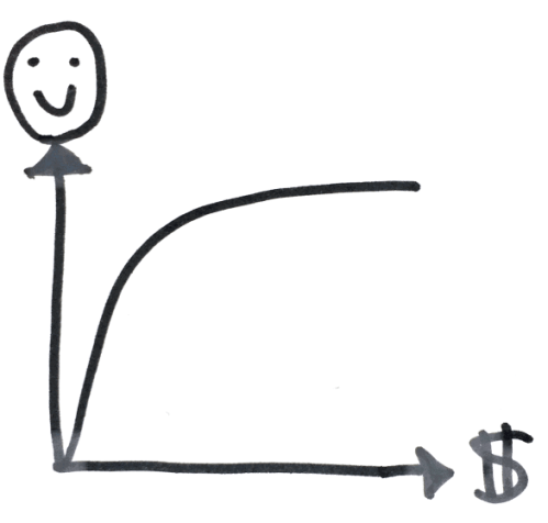 Det betyder dog ikke, at penge er irrelevante for hvor glad man er. Videnskabelige studier har vist en sammenhæng mellem rigdom og livskvalitet, men jo rigere man er, desto mindre forskel gør flere penge. (4)