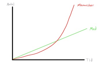Grafen ser ud til at bekræfte Malthus’ teori: Befolkningstallet stiger eksponentielt. Problemet med teorien er dog, at den bygger på to forkerte antagelser: