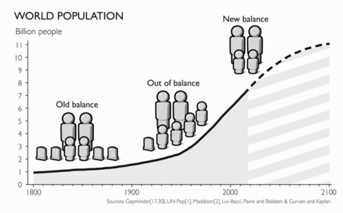 Før 1800-tallet steg befolkningen ganske langsomt, fordi mange mennesker døde, før de blev gamle. I løbet af 1900-tallet begyndte flere børn at overleve – og det fik stigningen til at accelerere. I dag fødes der gennemsnitligt lidt færre end 2.5 børn pr. kvinde i verden. FN forventer, at verdensbefolkningen vil stagnere på ca. 11 milliarder ved udgangen af de 21. århundrede[xxi]: