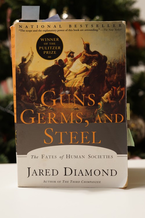 *Europæerne havde også andre fordele, der ikke nævnes i bogens titel, såsom heste, læsefærdigheder, og politiske systemer. I indlægget her fokuserer jeg desuden på Europa og Amerika, men bogen har også meget at sige om den historiske udvikling i Afrika, Asien, og Australien.