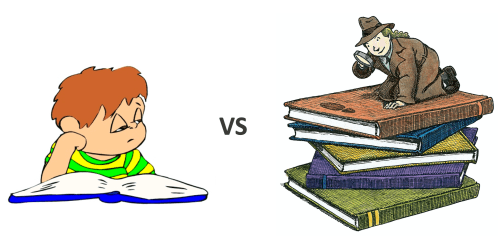 I år havde jeg to ugers sommerferie, og jeg ville gerne nå at andet end at læse. Bøgerne på billedet herover er studierelevante bøger, og dem ville jeg gerne arbejde mig igennem på et par dage. Det ville have været umuligt med den normale læsemetode. Derfor brugte jeg detektiv-metoden.