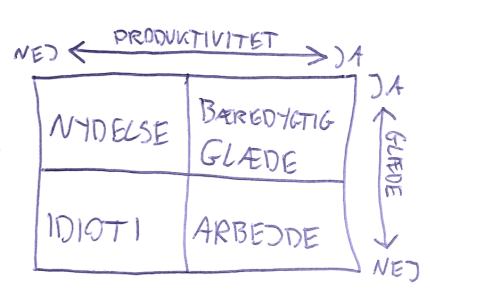 I sin research har psykologen Mihaly Csikszentmihalyi vist at malere, musikere, faldskærmudspringere, hyrder, kokke, skakspillere, arkitekter, bjergbestigere, atleter og kirurger alle oplever en lignende psykologisk tilstand gennem deres aktiviteter. Tilstanden hedder flow og er forbundet både med glæde og produktivitet. Vi er glade når vi lever os ind i en opgave. Vores bekymringer forsvinder og vi er i nuet. Når vi er i flow er vi produktive fordi vi er opslugte af den opgave vi er i gang med. I bogen Flow skriver Csikszentmihalyi at mennesker har nemmere ved at komme i flow når vi er på arbejde end i vores fritid. En af grundene er at vi er aktive når vi arbejder. Bruce Springsteen er i flow når han giver koncert.