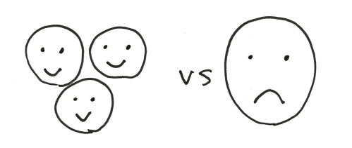 Det er usundt at sammenligne sig selv med andre. I en undersøgelse startede Sonja Lyubomirsky med at måle hvor glade en gruppe forsøgspersoner var. Derefter gav hun hver forsøgsperson en opgave. Deltagerne arbejdede side om side med en skuespiller, der foregav også at være forsøgsperson. I nogle tilfælde løste skuespilleren opgaven hurtigere end forsøgspersonen; andre gange var skuespilleren langsommere. Lyubomirsky fandt et interessant mønster. Glade forsøgspersoner var upåvirkede af hvorvidt skuespilleren ved siden af dem havde været hurtigere eller langsommere end dem selv. De vurdere deres præstation ud fra hvordan de selv mente at de havde klaret sig. Negative forsøgspersoner var stærkt påvirkede af skuespillerens præstation. Hvis skuespilleren havde været langsom, mente at de selv var dygtige. Hvis skuespilleren var hurtig, var de utilfredse med deres egen præstation. Resultatet er gentaget i andre eksperimenter.