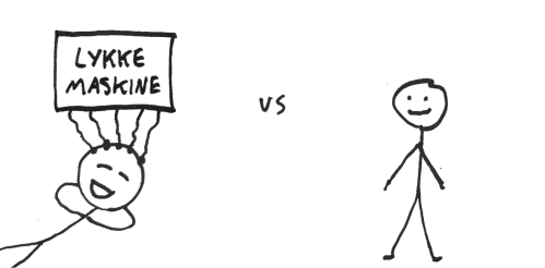 Hvis man spørger danskere “Bliver man lykkelig af at have mange penge?”, vil de fleste nok sige nej. Det er en kliche, at penge ikke nødvendigvis fører til lykke, men alligevel er ovenstående model en del af vores virkelighed. Virksomheder som er dygtige til marketing, fortæller en historie om, at virksomhedens produkt vil gøre os glade (som regel gennem nydelse eller boost af vores ego). Den underliggende besked er: Hvis du køber vores produkt, bliver du lige så glad/smuk/populær som dem i reklamerne.