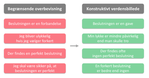 Mind dig selv om det konstruktive verdensbillede, når du har brug for beslutsomhed. Hvis du lader de begrænsende overbevisninger styre dig, gør du beslutningen sværere end den behøver at være.